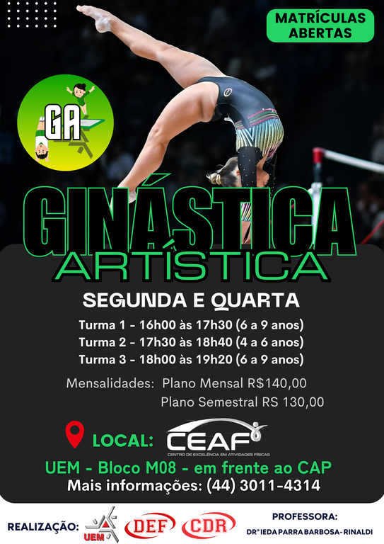 Local: UEM - Área de Ginástica do Bloco M08 (em frente ao Colégio CAP).
